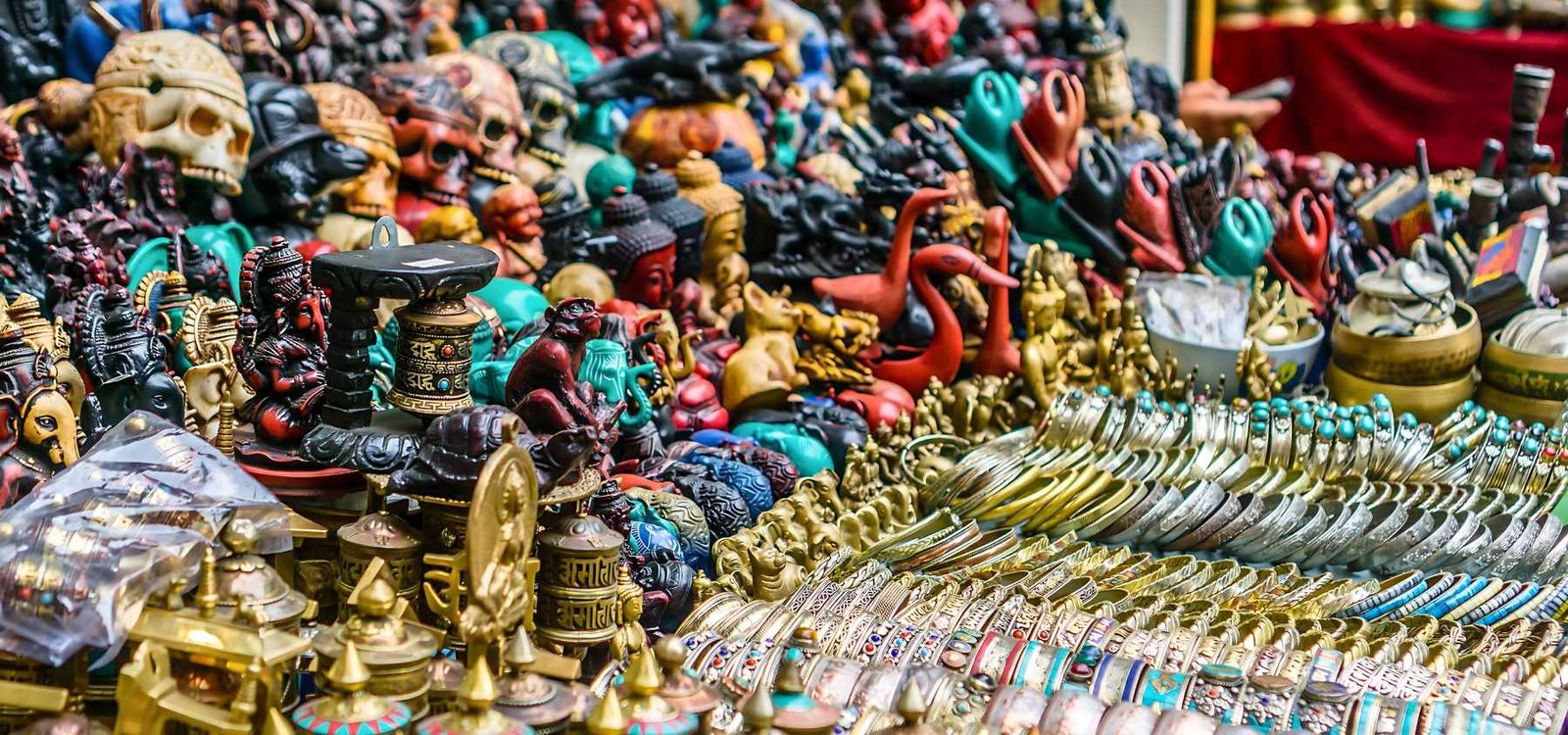 さらにニューロードからインドラ・チョーク周辺へと探索を進めると、色鮮やかな織物や伝統的な婚礼装飾品を扱うショップや露店が次々と現れます。また、繊細な木彫り装飾が施された「セト・マチェンドラナート寺院」や、一対の立派な獅子像が守る「アカシュ・バイラブ寺院」など、街の至る所にある見事な寺院建築に圧倒されることでしょう。