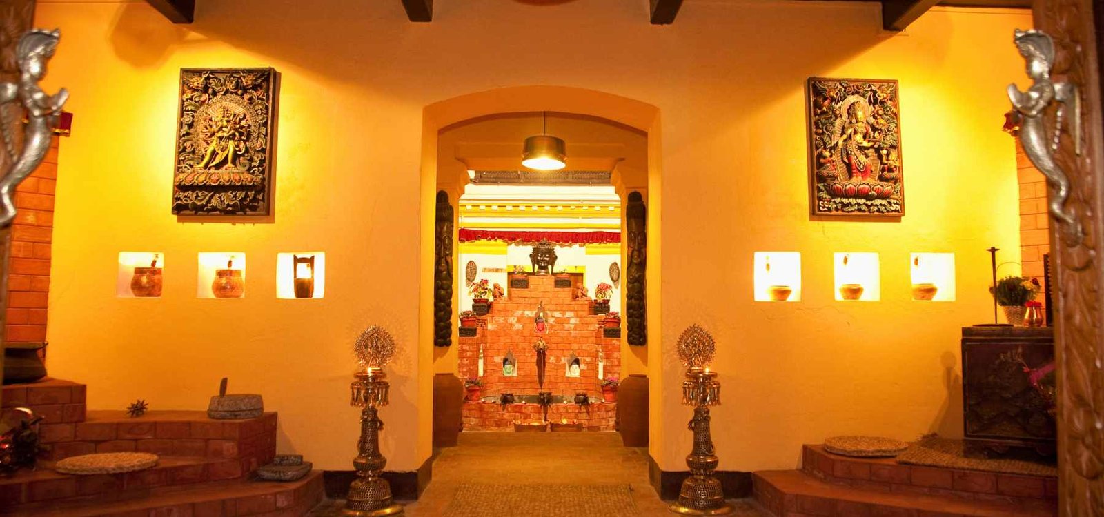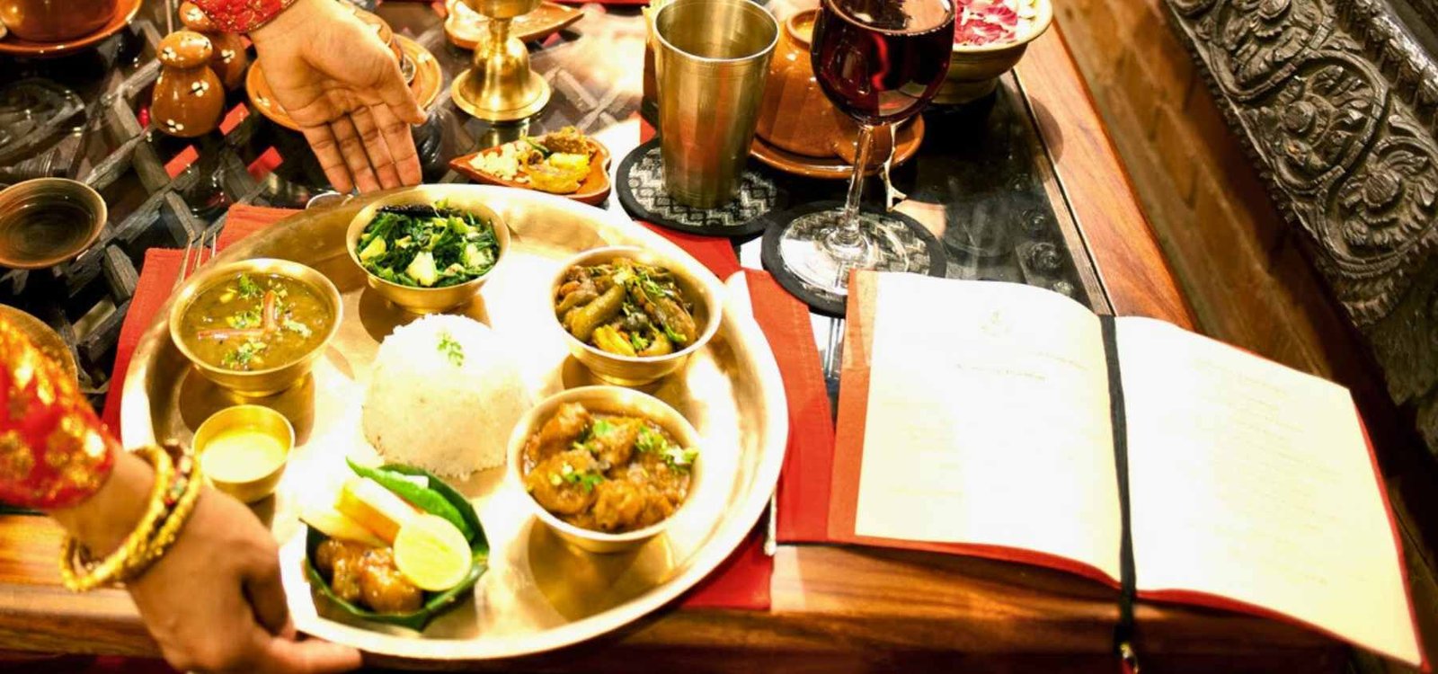 夜にホテルからお迎えし、カトマンドゥの最高級の伝統的なネパール料理レストランの一つへお送りいたします。この会場は素晴らしい雰囲気を提供し、絶品のネパール料理を提供しており、思い出に残るダイニング体験をお約束いたします。